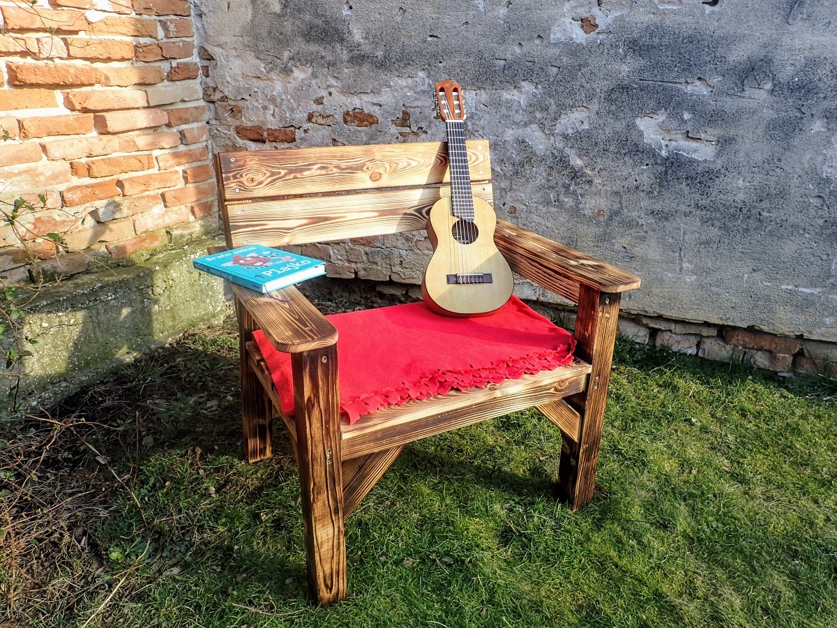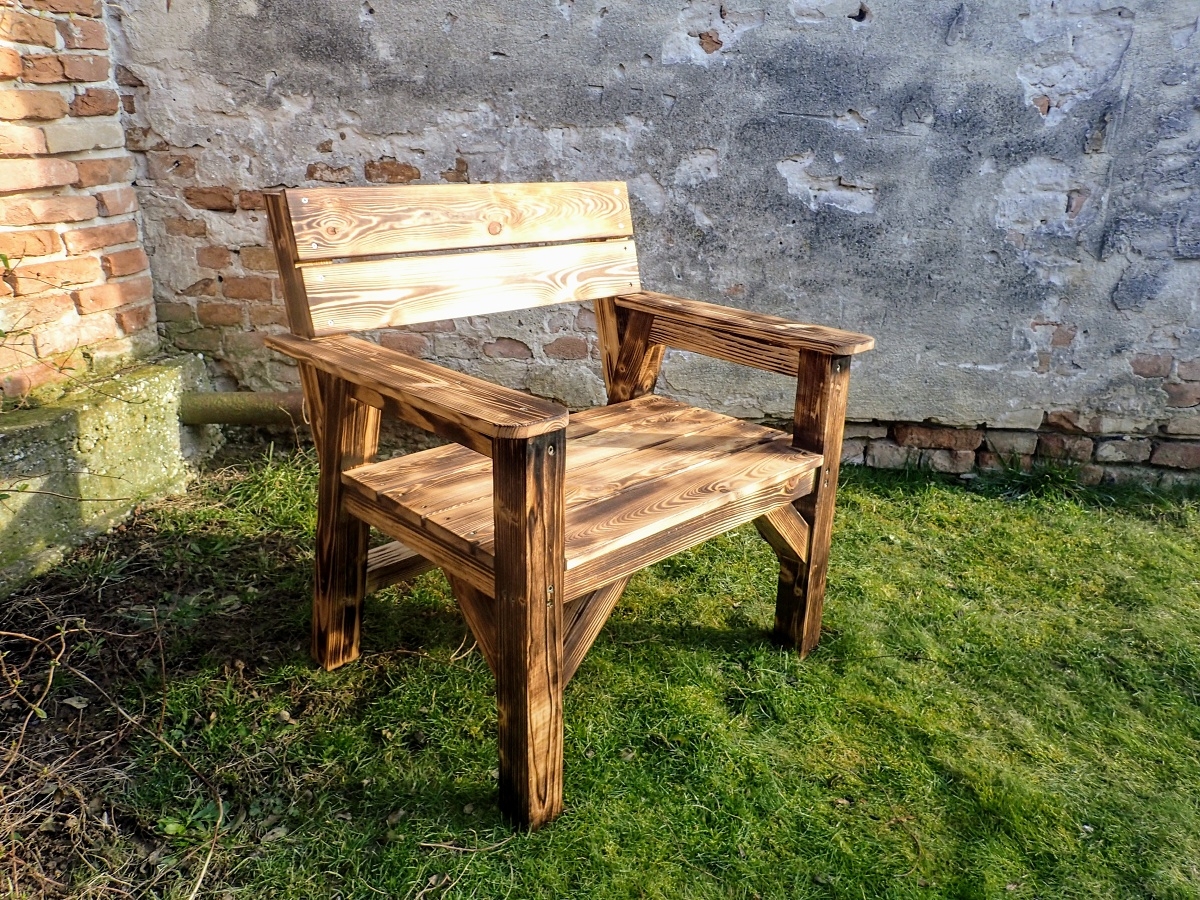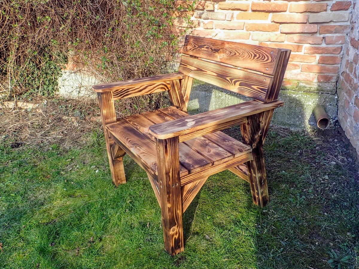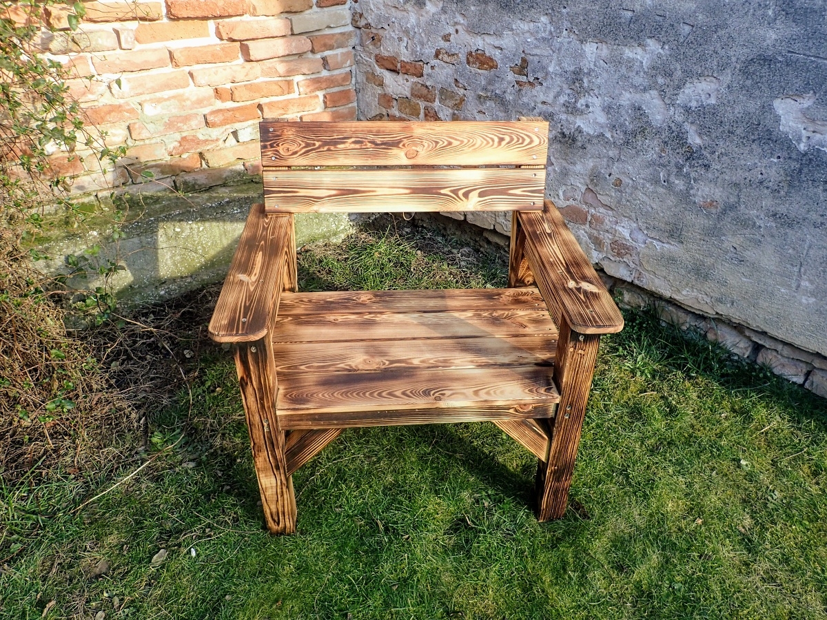 Kreslo je povrchovo ošetrené opalovaním a olejom.