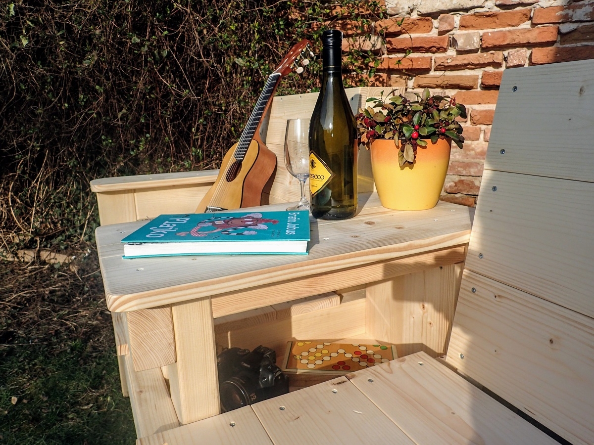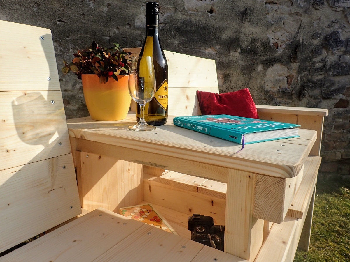 Veľmi príjemné na posedenie pri poobednej kávičke alebo večernom poháriku na záhrade. Pod stolčekom sa ukrýva dômyselný odkladací priestor na drobnosti. Kreslo je povrchovo ošetrené olejom.