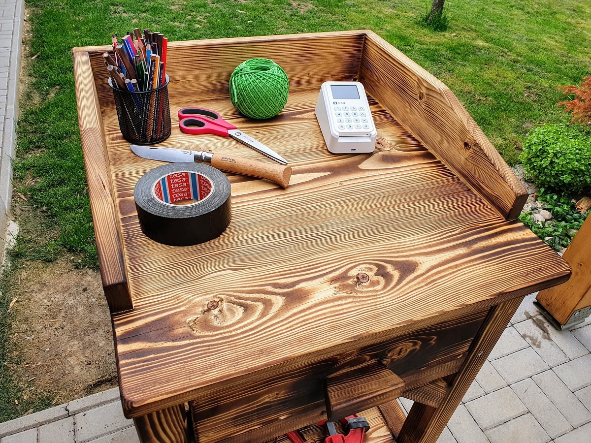 Obslužný pult vhodný na rôzne pracoviská kde treba v rýchlosti zapisovať, lepiť, baliť, počítať alebo platiť. Má praktické bočnice zabraňujúce prepadávanie predmetov a veľkokapacitnú zásuvku.