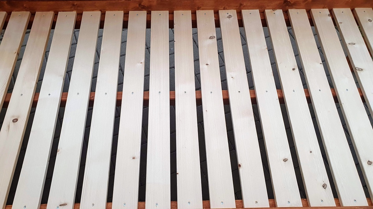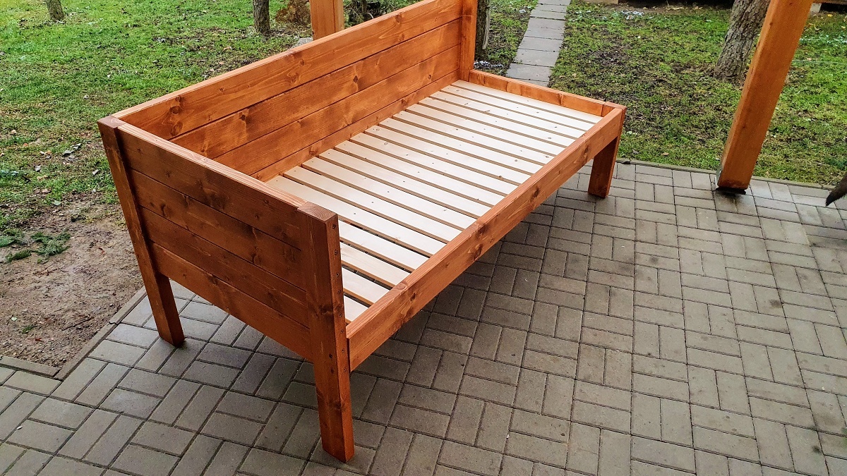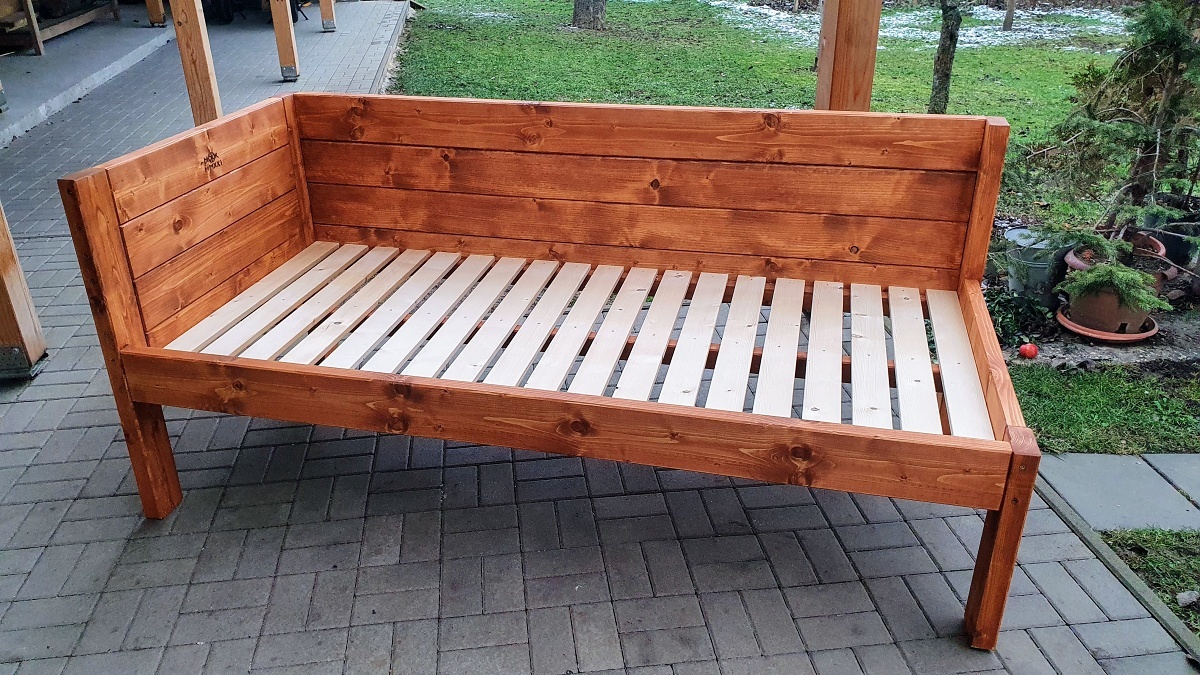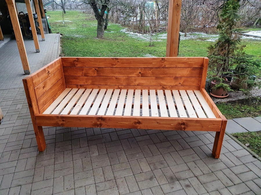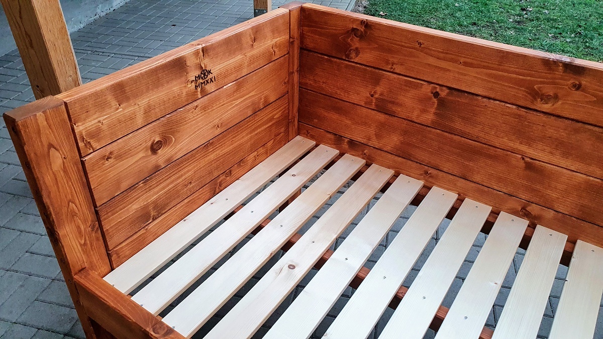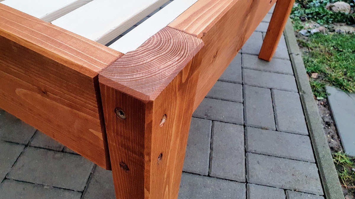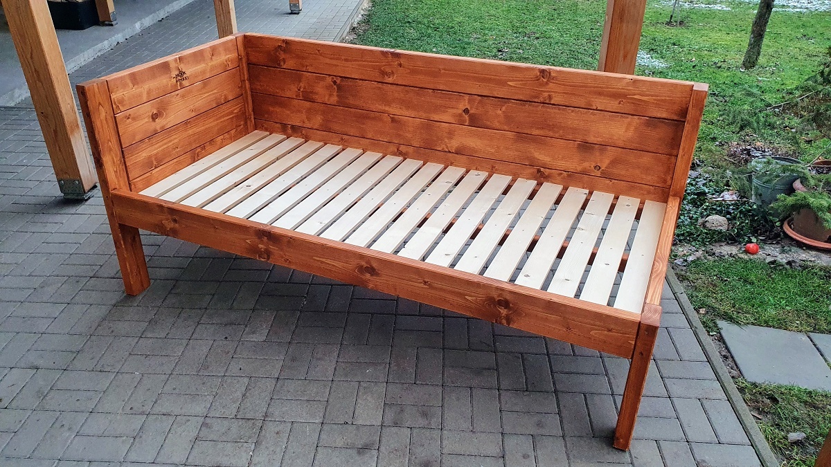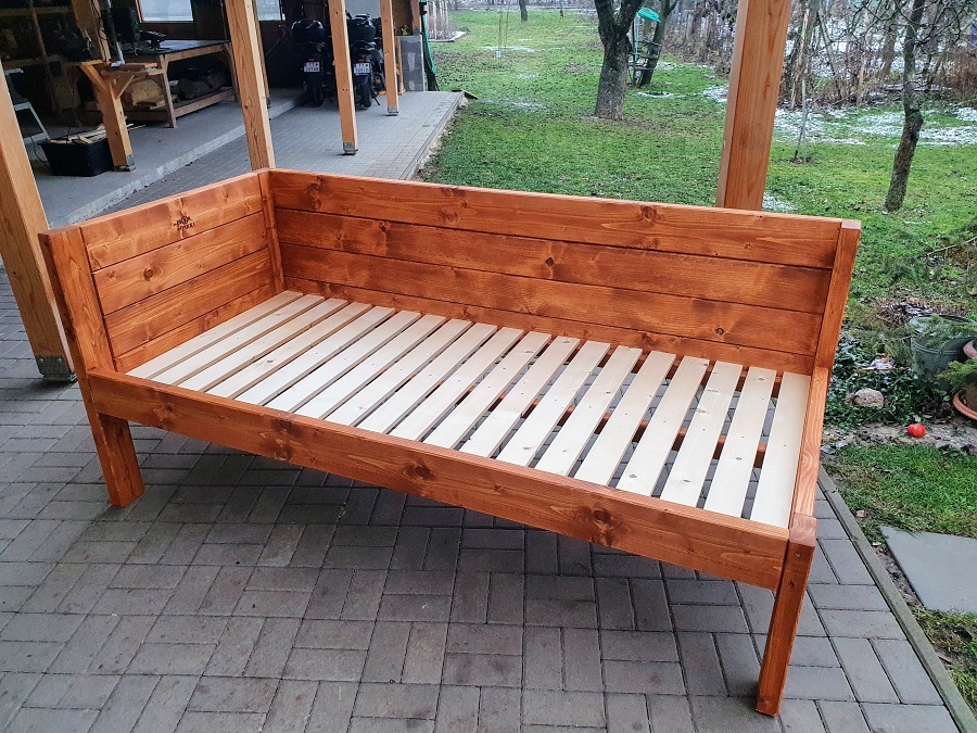 Rohová postel pre matrac 200 x 90 cm z masívneho smrekového dreva v jednom kuse nerozoberateľná.