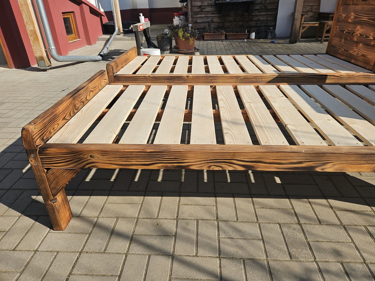 Publikované 11. marca 20251. apríla 2026 od Drevo KolárPostele 200 x 90 02/2025 Masívne drevené postele. Drevené postele z recyklovaného smrekového dreva. Materiál: smrek Rozmery: rošt[cm] 200 x 90 výška roštu [cm] 45 výška čela [cm] 100 Povrchová úprava: opaľovanie a olej Share on Facebook(Otvorí sa v novom okne) Facebook Share on WhatsApp(Otvorí sa v novom okne) WhatsApp Súvisiace