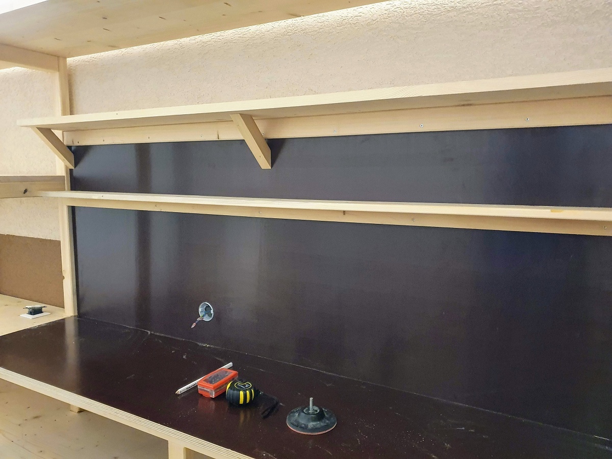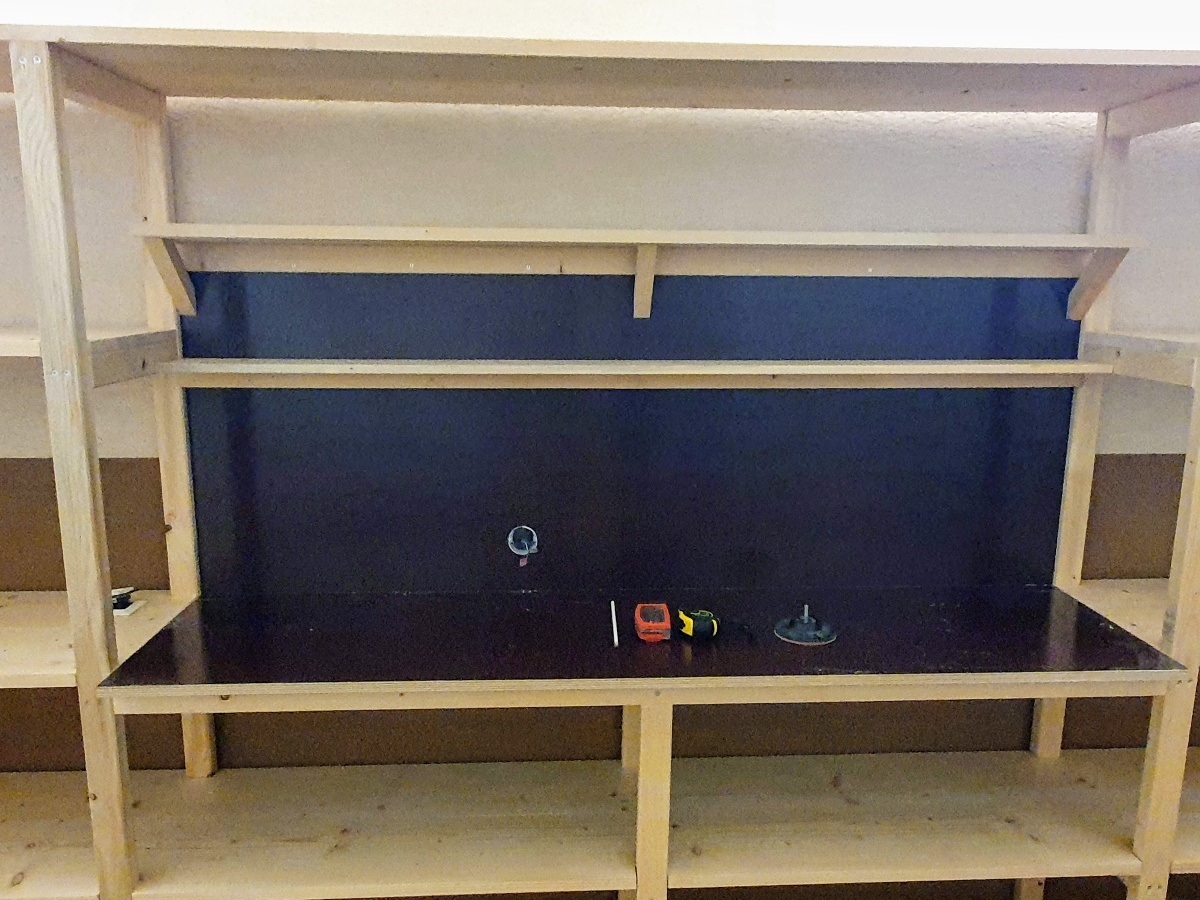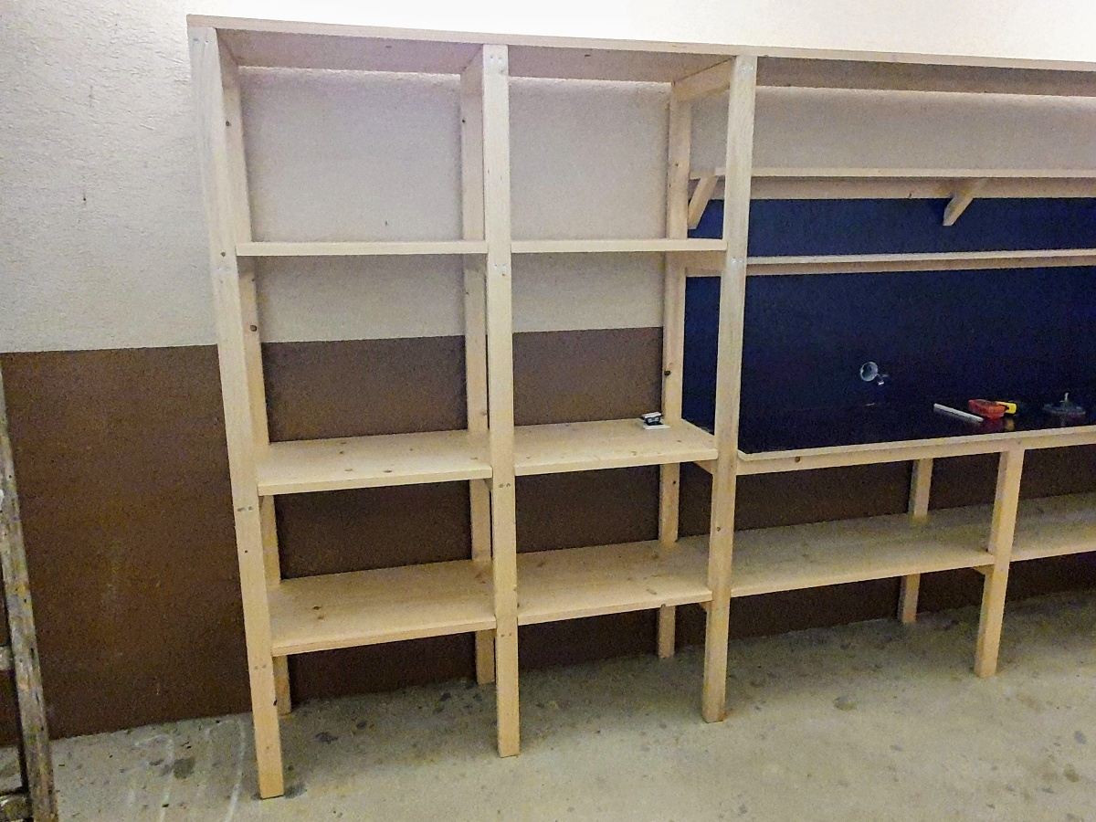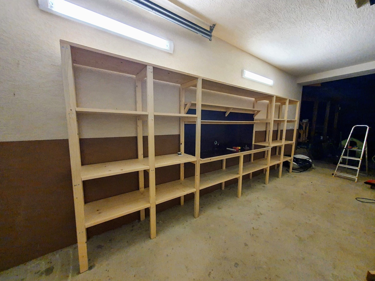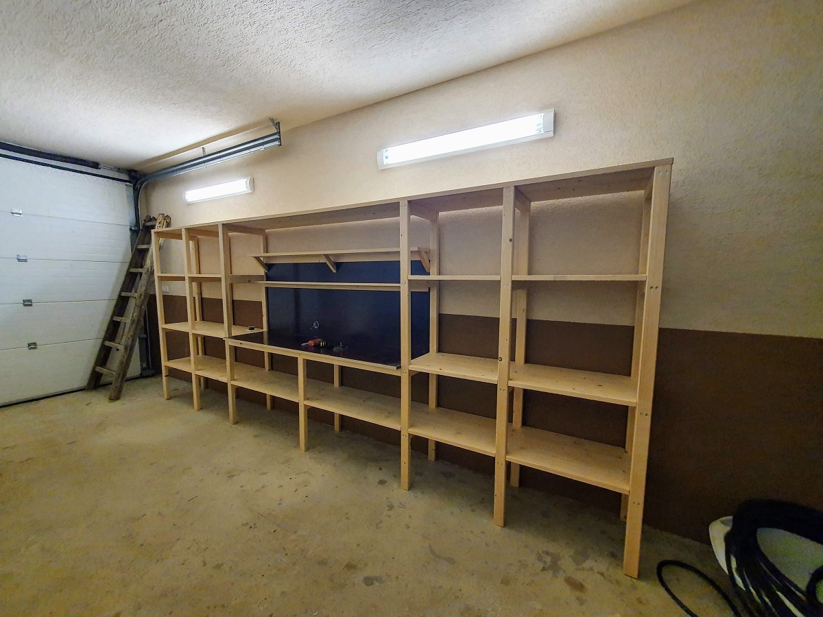 Publikované 21. marca 2021 od Drevo KolárRegál do garáže 03/2021 Regál do garáže s pracovným stolom. Materiál: smrek vodeodpudivá preglejka 21 mm Rozmery: výška [cm]: 200 dĺžka [cm]: 480 hĺbka [cm]: 45 pracovná doska [cm]: 200 x 50 Share on Facebook(Otvorí sa v novom okne) Facebook Share on WhatsApp(Otvorí sa v novom okne) WhatsApp Súvisiace